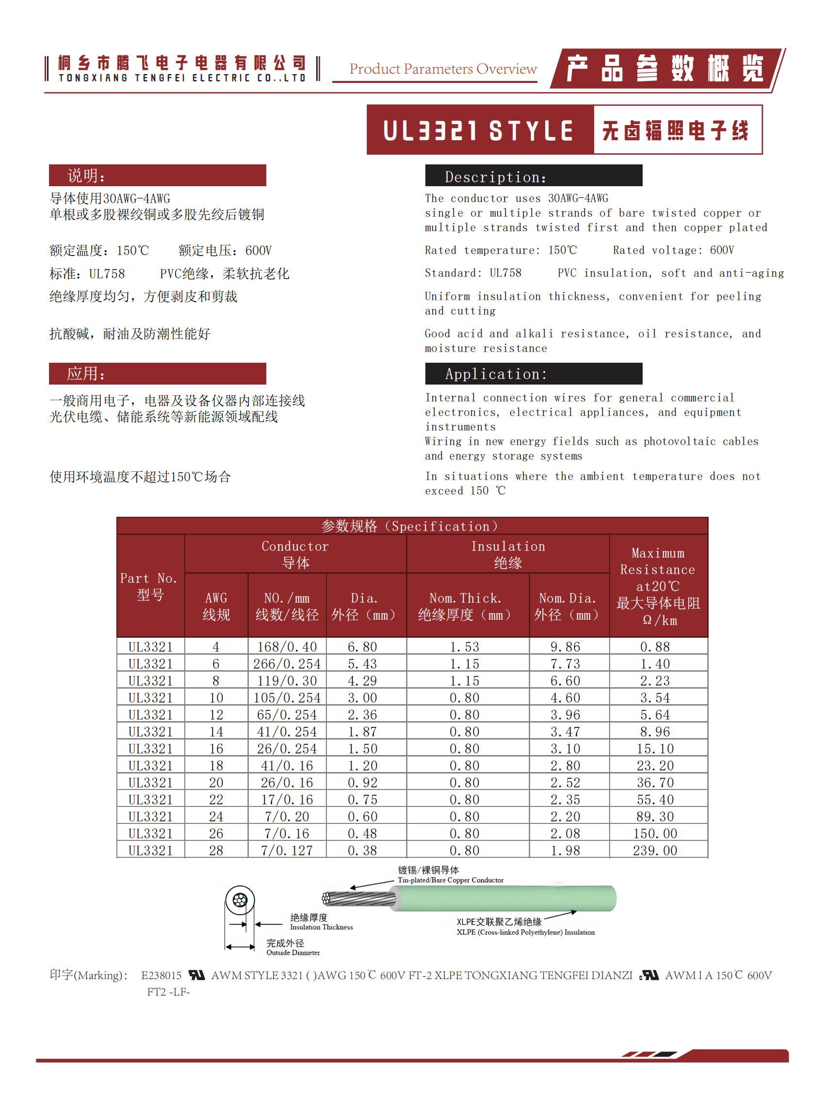 UL3321 STYLE 無鹵輻照電子線